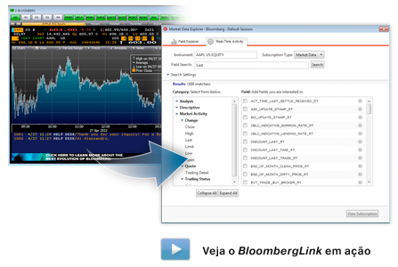 Transfira dados em tempo real do Bloomberg Desktop *, da API do Bloomberg Server * ou dos dados da Reuters * para qualquer cálculo ou visualização. Um projeto coerente integra fortemente feeds financeiros com dados integrados, atualizados e históricos do Wolfram|Alpha e dados de seus próprios bancos de dados SQL, ad NoSQL e APIs.