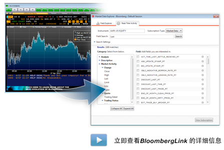 轻松地将实时彭博桌面*、彭博服务器 API* 或者路透社数据 传入任何计算或可视化。统一的设计将财务接口与来自 Wolfram|Alpha 的内置、最新和历史数据和用户自有的SQL、NoSQL 数据库和 API 的数据紧密集成在一起。