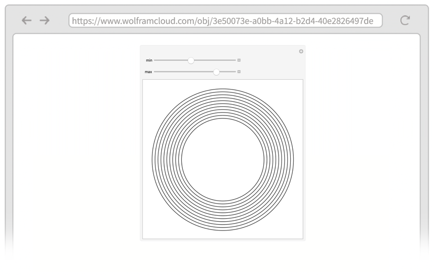 If you don’t tell it otherwise, CloudPublish will set up a new webpage in the Wolfram Cloud, with a unique address. Anyone in the world who goes to that webpage with their web browser will find your graphics there.