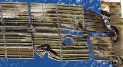 The Mir space station consists of several modules flown into space individually and connected together in orbit. One of these modules, Spektr, contained instruments for observing Earth and served as living quarters for American astronauts. In June 1997 its occupant was Dr. Michael Foale, who shared Mir with Russian cosmonauts Vasily Tsibliyev and Alexander Lazutkin. On June 25 the Spektr module was damaged when it collided with an unmanned supply vessel during testing of a new automated guidance system. The station depressurized and lost power, and the Spektr module was hurriedly sealed off—along with most of Foale's personal belongings—to prevent depressurization of the rest of Mir.