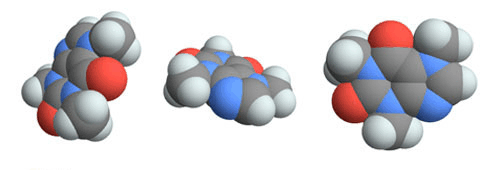 A 3D, space-filling molecular plot of caffeine using built-in chemical data