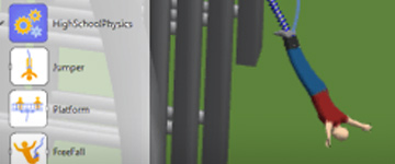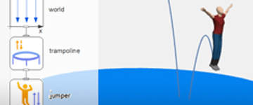 A trampoline is a recreational device consisting of fabric stretched between a steel frame, using many springs. However, using it can be dangerous if the jumper loses control and falls. In this example, you will analyze the dynamics of the jumper by changing different parameters such as the weight of the jumper, the tilt of the ground and the jumper’s initial velocity.