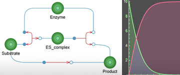 Most chemical reactions are not irreversible and in fact go in both directions. However, all reversible reactions reach a steady state in which the concentrations of the substrates within the reaction become constant. In this example, you will learn to model a reversible chemical reaction and analyze the dynamics of the reaction. You will learn about equilibrium constants and reaction rates.