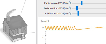 Ever wondered what the power rating of the radiator in your house should be, or how the ambient conditions affect your room temperature? This example will model all the components of a house and combine them to see how your room temperature changes with ambient temperature fluctuations.