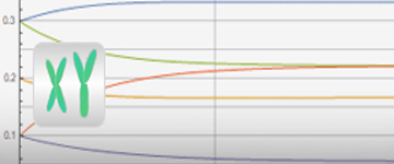The Hardy–Weinberg principle is a fundamental principle in population genetics. It describes populations that are no longer undergoing evolution and thus reach a steady state. In this example, you will learn to construct a genetic inheritance model and analyze scenarios when the assumptions of Hardy–Weinberg equilibrium are violated.