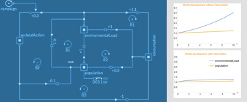 Have you ever tried to understand the structure of a problem using qualitative models? Using causal loop diagrams, you can quickly create such models that are easy to understand. This example shows a causal loop model for the world dynamics in order to understand how a campaign can reduce the environmental load.