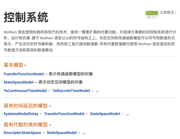 AffineStateSpaceModel ▪ AsymptoticOutputTracker ▪ BodePlot ▪ CarlemanLinearize ▪ ContinuousTimeModelQ ▪ ControllabilityGramian ▪ ControllabilityMatrix ▪ ControllableDecomposition ▪ ControllableModelQ ▪ DescriptorStateSpace ▪ DiscreteInputOutputModel ▪ DiscreteLQEstimatorGains ▪ DiscreteLQRegulatorGains ▪ DiscreteTimeModelQ ▪ DualSystemsModel ▪ EstimatorGains ▪ EstimatorRegulator ▪ FeedbackLinearize ▪ FeedbackSector ▪ FeedbackSectorStyle ▪ FeedbackType ▪ FullInformationOutputRegulator ▪ GainMargins ▪ GainPhaseMargins ▪ InternallyBalancedDecomposition ▪ JordanModelDecomposition ▪ KalmanEstimator ▪ KroneckerModelDecomposition ▪ LinearizingTransformationData ▪ LQEstimatorGains ▪ LQGRegulator ▪ LQOutputRegulatorGains ▪ LQRegulatorGains ▪ MinimalStateSpaceModel ▪ ModelPredictiveController ▪ NicholsGridLines ▪ NicholsPlot ▪ NonlinearStateSpaceModel ▪ NyquistGridLines ▪ NyquistPlot ▪ ObservabilityGramian ▪ ObservabilityMatrix ▪ ObservableDecomposition ▪ ObservableModelQ ▪ OutputControllabilityMatrix ▪ OutputControllableModelQ ▪ OutputResponse ▪ PhaseMargins ▪ PhaseRange ▪ PIDData ▪ PIDDerivativeFilter ▪ PIDFeedforward ▪ PIDTune ▪ PoleZeroMarkers ▪ RootLocusPlot ▪ SamplingPeriod ▪ SingularValuePlot ▪ SmithDelayCompensator ▪ StabilityMargins ▪ StabilityMarginsStyle ▪ StateFeedbackGains ▪ StateOutputEstimator ▪ StateResponse ▪ StateSpaceModel ▪ StateSpaceRealization ▪ StateSpaceTransform ▪ StateTransformationLinearize ▪ SystemsConnectionsModel ▪ SystemsModelControllerData ▪ SystemsModelDelay ▪ SystemsModelDelayApproximate ▪ SystemsModelDelete ▪ SystemsModelDimensions ▪ SystemsModelExtract ▪ SystemsModelFeedbackConnect ▪ SystemsModelLabels ▪ SystemsModelLinearity ▪ SystemsModelMerge ▪ SystemsModelOrder ▪ SystemsModelParallelConnect ▪ SystemsModelSeriesConnect ▪ SystemsModelStateFeedbackConnect ▪ SystemsModelVectorRelativeOrders ▪ ToContinuousTimeModel ▪ ToDiscreteTimeModel ▪ TransferFunctionCancel ▪ TransferFunctionExpand ▪ TransferFunctionFactor ▪ TransferFunctionModel ▪ TransferFunctionPoles ▪ TransferFunctionZeros ▪ InputOutputResponse ▪ InputOutputResponseData ▪ RiccatiSolve ▪ DiscreteRiccatiSolve ▪ LyapunovSolve ▪ DiscreteLyapunovSolve ▪ SystemModelExamples ▪ SystemModel ▪ SystemModels ▪ SystemModelSimulate ▪ SystemModelMeasurements ▪ SystemModelSimulationData ▪ SystemModelSimulateSensitivity ▪ SystemModelPlot ▪ ParametricPlot ▪ Plot ▪ ListLinePlot ▪ LogPlot ▪ SystemModelParametricSimulate ▪ ParametricFunction ▪ NMinimize ▪ FindMinimum ▪ NMaximize ▪ SystemModelLinearize ▪ FindSystemModelEquilibrium ▪ ConnectSystemModelController ▪ SystemModelReliability ▪ ReliabilityDistribution ▪ SurvivalFunction ▪ StructuralImportance ▪