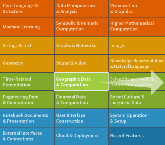 Wolfram Geography is an integrated part of Wolfram Language. The full system contains over 6,000 built-in functions covering all areas of computation—all carefully integrated so they work perfectly together.