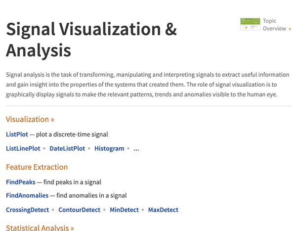 Wolfram Signal Processing is an integrated part of Wolfram Language. The full system contains over 6,000 built-in functions covering all areas of computation—all carefully integrated so they work perfectly together.