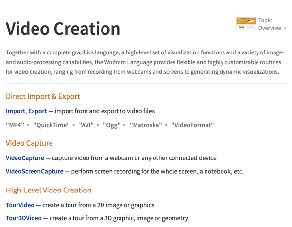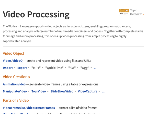 Wolfram Video Computation is an integrated part of Wolfram Language. The full system contains over 6,000 built-in functions covering all areas of computation—all carefully integrated so they work perfectly together.