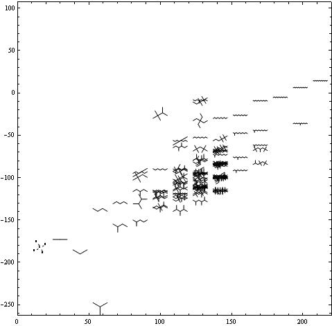 Mathematica 6 lets you immediately take large-scale chemical data and do new analysis and visualization. This is a plot of melting point against molecular weight for alkanes.