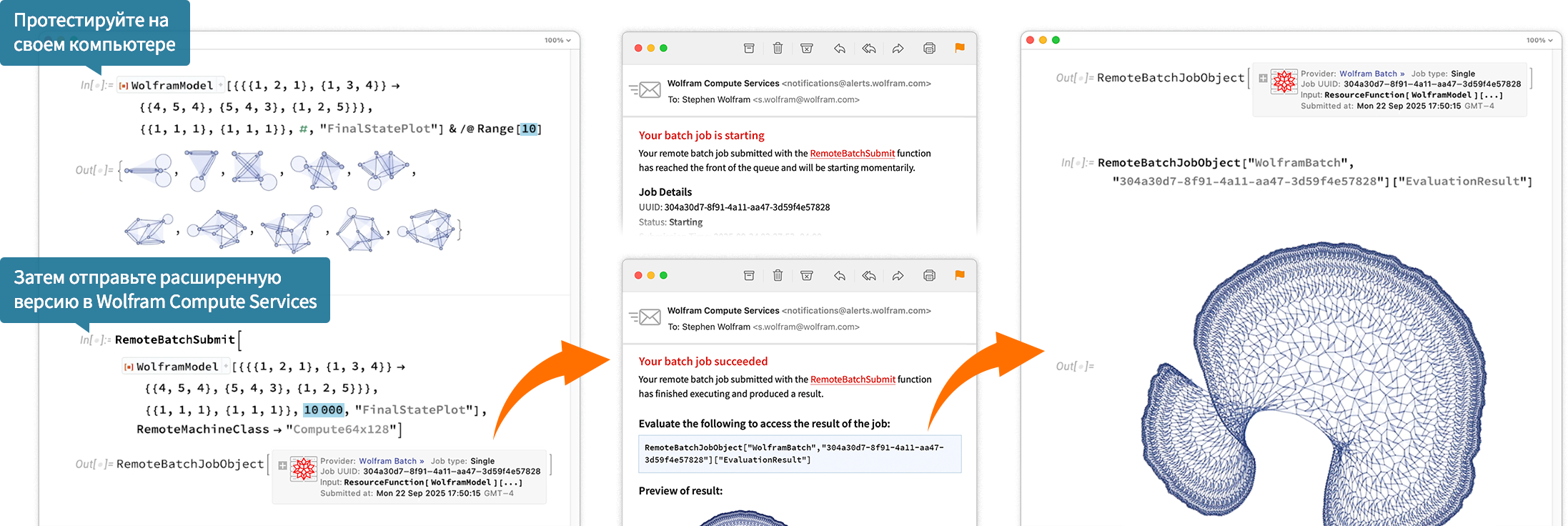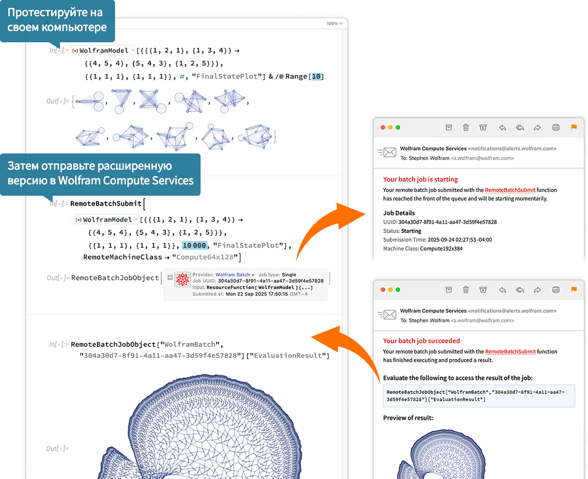 Если вы используете Mathematica, Wolfram|One или Wolfram Engine 14.3 на своем рабочем столе, запустите RemoteBatchSubmissionEnvironment["WolframBatch"] один раз, чтобы включить эту функцию. Эта функциональность автоматически доступна в Wolfram Cloud уже сейчас и появится для рабочего стола в будущих версиях клиентов Wolfram.