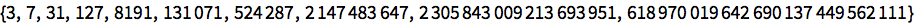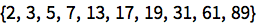mpe = Table[MersennePrimeExponent[n], {n, 1, 10}]