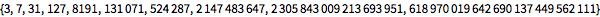 mpe = Table[MersennePrimeExponent[n], {n, 1, 10}]Out[1]=