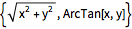 ToPolarCoordinates[{x, y}]Out[1]=