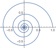 FromPolarCoordinates[{Exp[-t/10], t}] // Evaluate, {t, 0, 50},