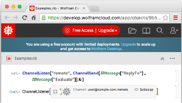 在 Wolfram Cloud 账户或任意其他远程 Wolfram 系统中,设定一个侦听器评估收到消息并将结果返回给特定信道.