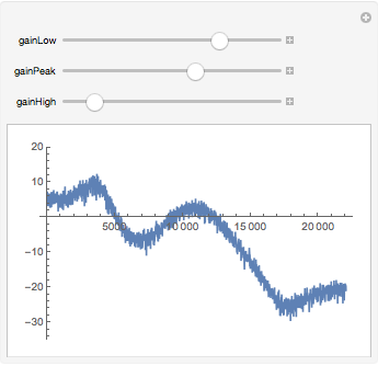 RecurrenceFilter[eq[gainLow, gainPeak, gainHigh], Audio@white],