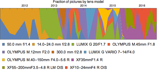 Neste gráfico mais elaborado, você pode ver como o uso de lentes mudou ao longo do tempo.