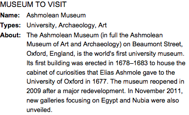 {Style["MUSEUM TO VISIT", 15], SpanFromLeft},