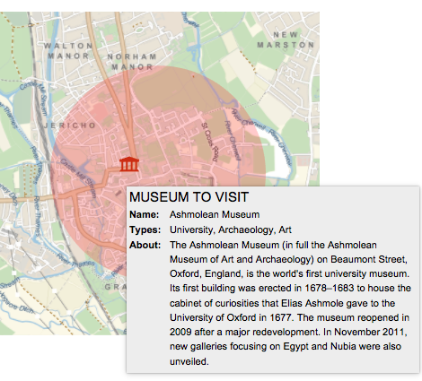 在博物馆周围的地图上,以提示框的形式可视化该博物馆的信息.