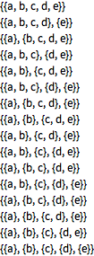 list = {a, b, c, d, e};FoldPairListをTakeDropと一緒に使って次の長さに分割する.