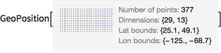 {lat, lon} = GeoBounds[Entity["Country", "UnitedStates"]]Out[1]=