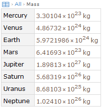 「Mass」というラベルをクリックして,惑星の質量だけを表示する.