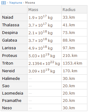 「13 total」というラベルをクリックして海王星(Neptune)の全衛星を見る.