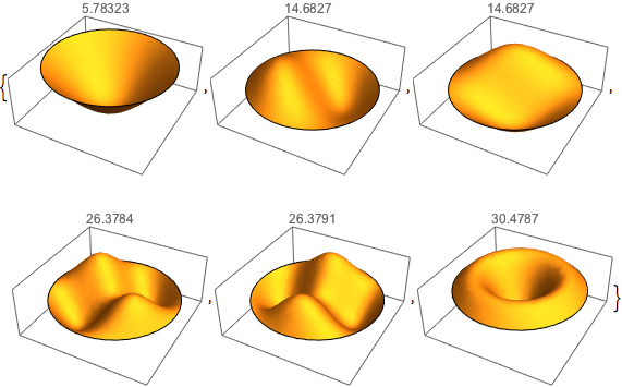 u[x, y], {x, y} \[Element] Disk[], 6];고유값을 확인합니다.
