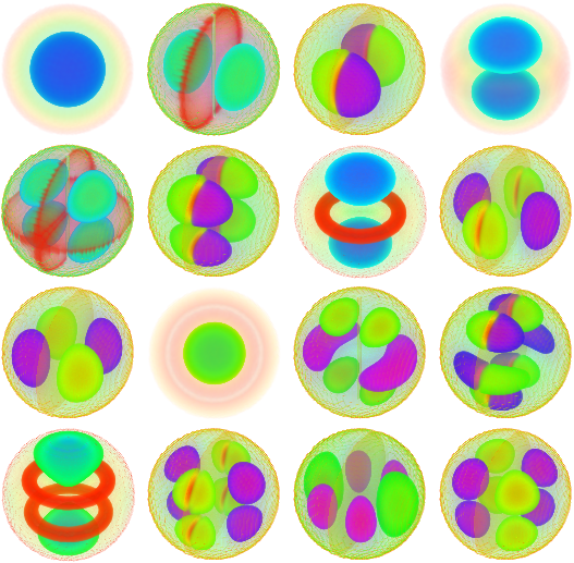 \[ScriptCapitalB] = DirichletCondition[u[x, y, z] == 0, True];求球内最小的十六个特征值和特征函数.