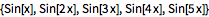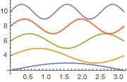Plot[Evaluate[funs + 2 Range[5]], {x, 0, \[Pi]}]