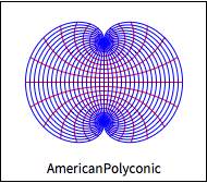 この関数は,地図投影法で投影してから,緯線(赤)と経線(青)の完全な格子を描画する.