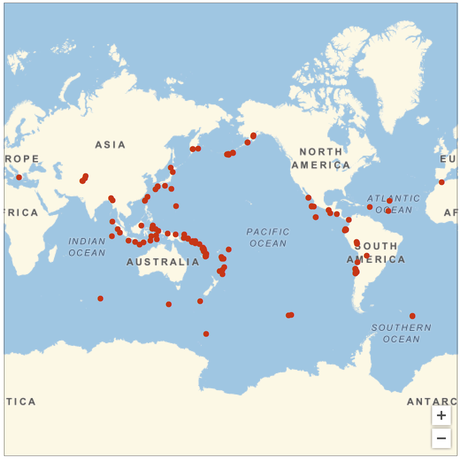 去年起きた地震を表す以下のプロットは,インタラクティブにズームインすることができる.