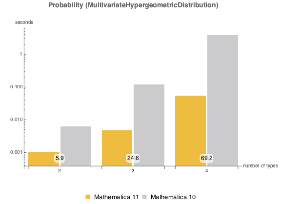 , {n, {100, 1000, 10000}}]多変量超幾何分布の確率.