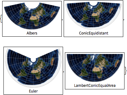 worldmap /@ {"Albers", "ConicEquidistant", "Euler",