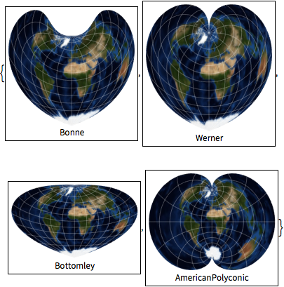 worldmap /@ {"Bonne", "Werner", "Bottomley", "AmericanPolyconic"}Out[5]=
