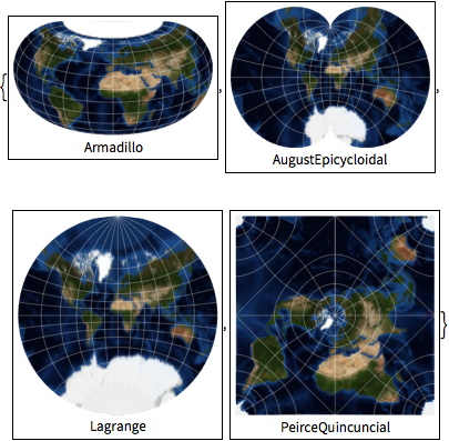 worldmap /@ {"Armadillo", "AugustEpicycloidal", "Lagrange",