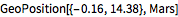 schiaparelliCrater = GeoPosition[{-0.16, 14.38}, "Mars"]
