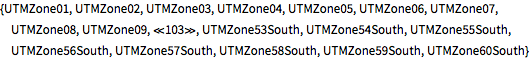 Esta lista contiene 60 zonas Norte UTM y las respectivas 60 zonas Sur UTM.