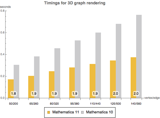 比较渲染三维图所用时间. 在使用 AMD Radeon R9 显卡的英特尔 Core i7 2.8GHz OSX10 系统中进行测试.