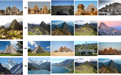 La recherche d'images basée sur le contenu consiste à trouver dans un jeu de données les images qui ressemblent le plus à une image. À l'aide de FeatureExtraction, vous pouvez évaluer la similarité entre des images de monuments mondiaux célèbres.