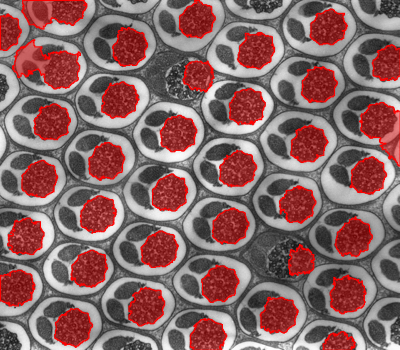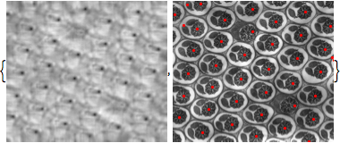 PlotRange->{{0, 54}, {0, 58}}]\);The cells' locations can be estimated by measuring the image correlation.