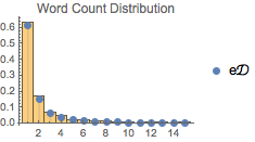 wordCount = Values[Counts[text]];Encontre uma distribuição simples para as contagens de palavras.