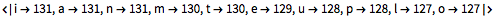 Maintenant, comptez le nombre d'alphabets dans lequel une lettre donnée est présente. Seules trois lettres sont présentes dans les 131 alphabets latins, à savoir a, i et n.