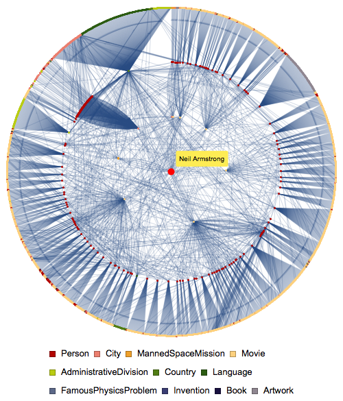 这是近 3,000 个各种类型的实体之间的直接链接视图,从尼尔·阿姆斯特朗开始,向上走两步.
