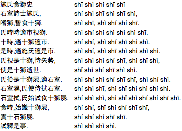 Tome el famoso poema chino: "Lion-Eating Poet in the Stone Den".