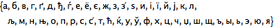Complement[Alphabet[Entity["WritingScript", "Cyrillic::73gxm"]],