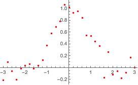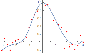 x -> Exp[-x^2] + RandomVariate[NormalDistribution[0, .15]], {x, -3,