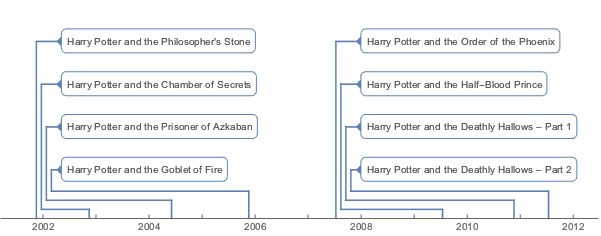 EntityClass["Movie", "HarryPotterFranchise"] -> "ReleaseDate"]Out[1]=